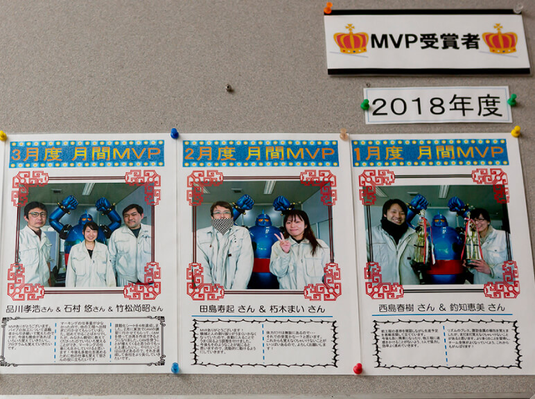 また「年間MVP」では年末に1年で最も輝いていた人1名が選ばれます。年間の場合は、月間よりも報奨金が高く、個人名の刻印の入ったトロフィーの授与もあります。